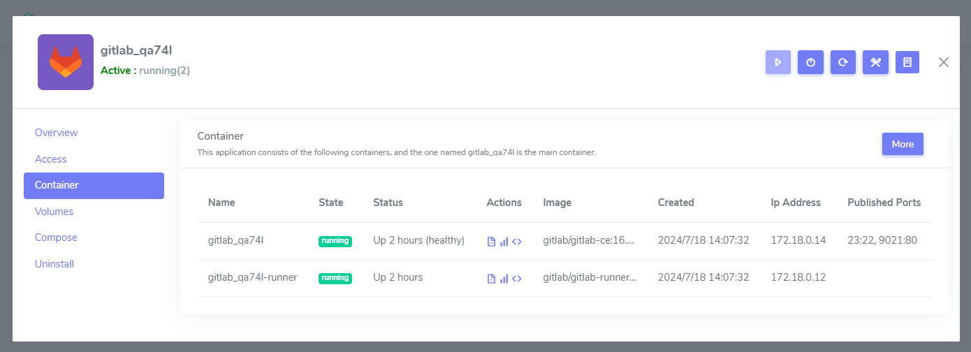 2. Click the Containers tab, you can see all containers status of this application